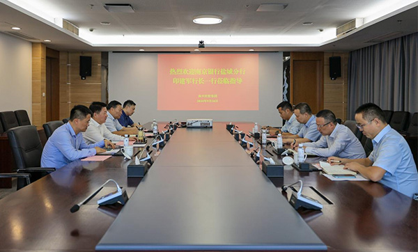 9月26日,江蘇南京銀行鹽城分行行長印建軍一行來集團座談交流。集團黨委書記、董事長董毅,黨委副書記、總經理陳鳴永接待。2024-09-26 -