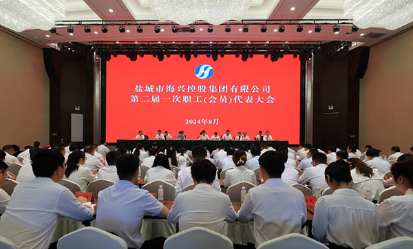 8月15日下午,鹽城市海興控股集團有限公司第二屆一次職工(會員)代表大會召開,集團黨委書記、董事長董毅出席會議并講話。2024-08-16